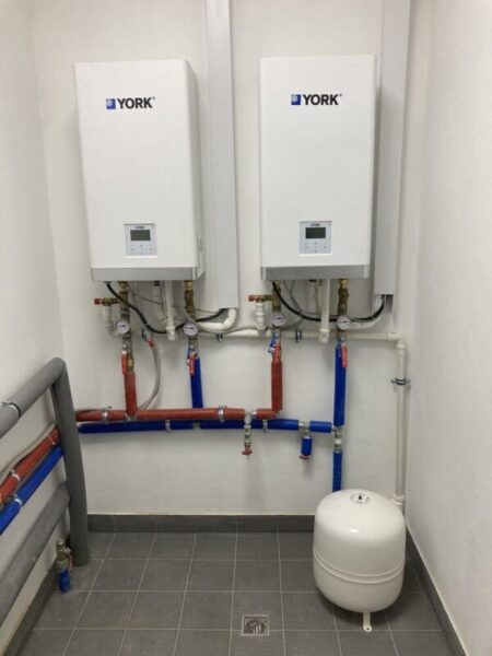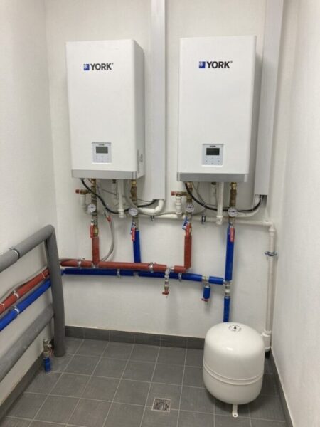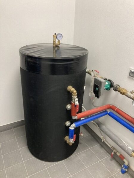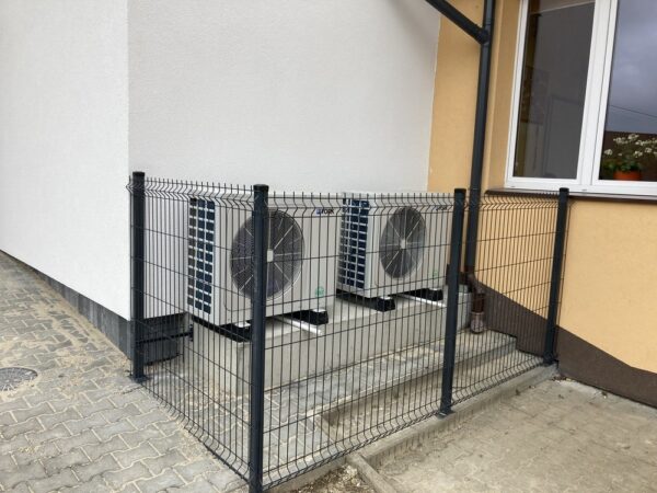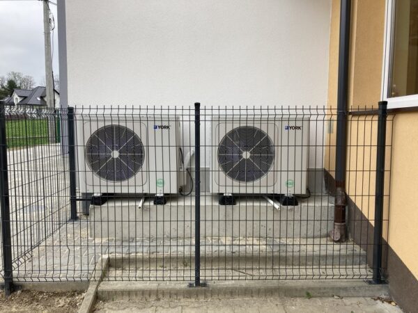 Budynek szkoły podstawowej w miejscowości Spytkowice w województwie małopolskim. Budynek został rozbudowany o salę gimnastyczną i pomieszczenia szatni oraz łazienek. Cała rozbudowana część zyskała nowe ogrzewanie podłogowe, zasilane kaskadą dwóch pomp ciepła split YORK YKF14ARB + YKF160ANBE9 o łącznej mocy 28 kW. Na instalacji grzewczej zamontowano zbiornik buforowy o pojemności 300l.