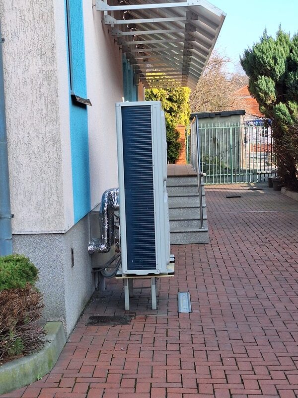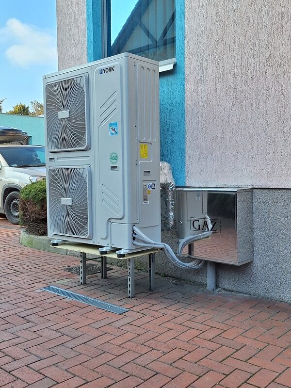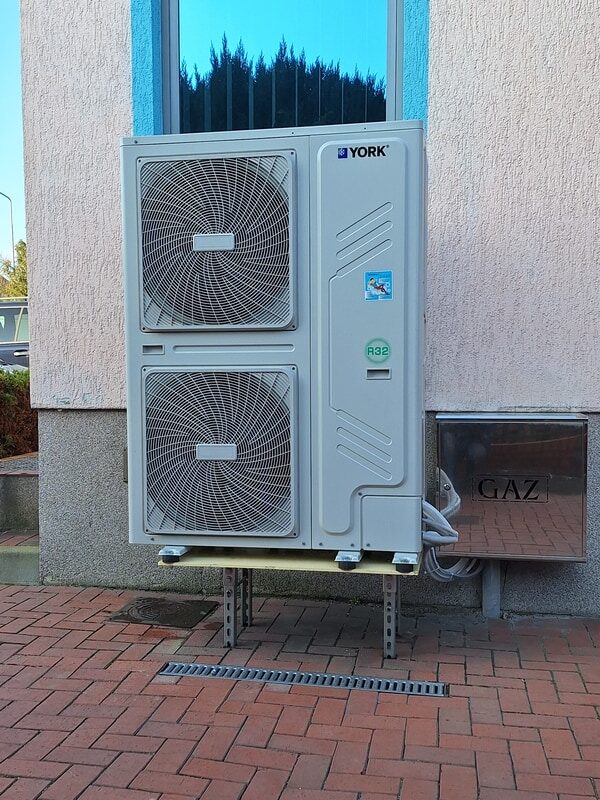 Do pracy na cele grzewcze zastosowano pompę ciepła York Monoblok YKF30CRB o mocy 30 kW, która ogrzewa instalację klimakonwektorów. Pompa ciepła wykorzystywana jest również w okresie letnim do chłodzenia pomieszczeń w oparciu o instalacje klimakonwektorów, doprowadzając czynnik chłodniczy o temperaturze 10 °C.